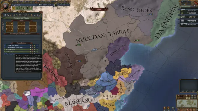 这个任务树的伟大成就之一是我们为其修改了独特的议会,其中有一个在政府中完全运作的文化(和种族)代表系统,即日升审议会。当您征服各省并将议会席位交给他们时,您将积极控制他们在议会中的代表权,每个代表权都有自己的作用。