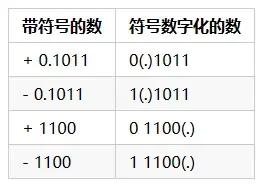 符号: 一个数的符号可以用一个二进制位来存储(0或1 )。
