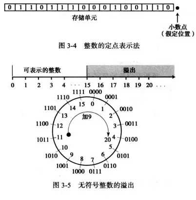 3.溢出问题:存储单元的位的数量有限制,可以表达整数范围是有限的,例如,在n位存储单元中可以存储的无符号整数仅为0到2^n-1,如果 20 = (10100)2 只保留4位存储单元的情况下,其结果为 0100 ,因为丢掉了左边的位,整数显示为 4 而不是20。