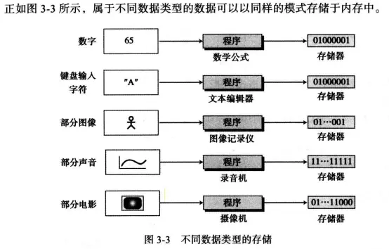 存储其他数据类型:我们后面将谈到的其他数据类型(文本、图像、音频和视频)是以位模式存储的,可以翻译为无符号整数。