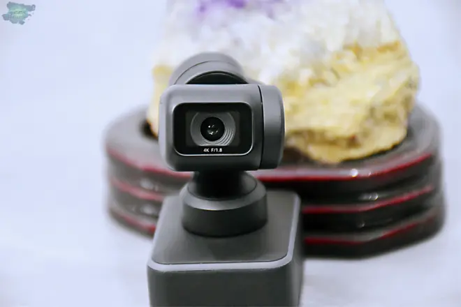初看和一般的摄像头类似,正面一个“大眼睛”,标注了“4K F/1.8”,是一个4K的1:1.8的变焦光圈;而它的“身体”由三轴云台组成,可以各方向自由旋转,转动相当灵活,不会有任何卡阻