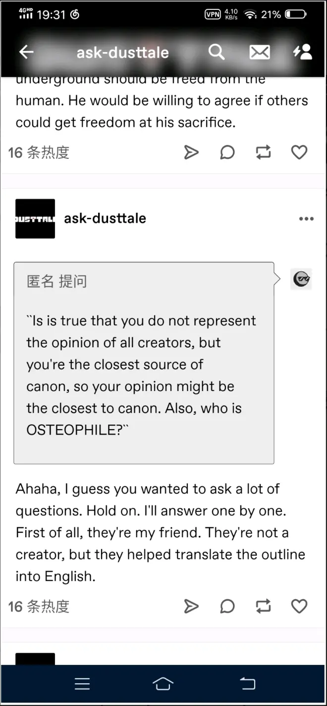 (被要求证明,以上内容的确来自Dusttale的真官方)