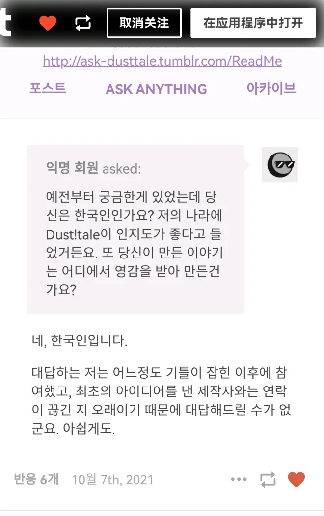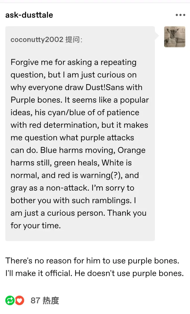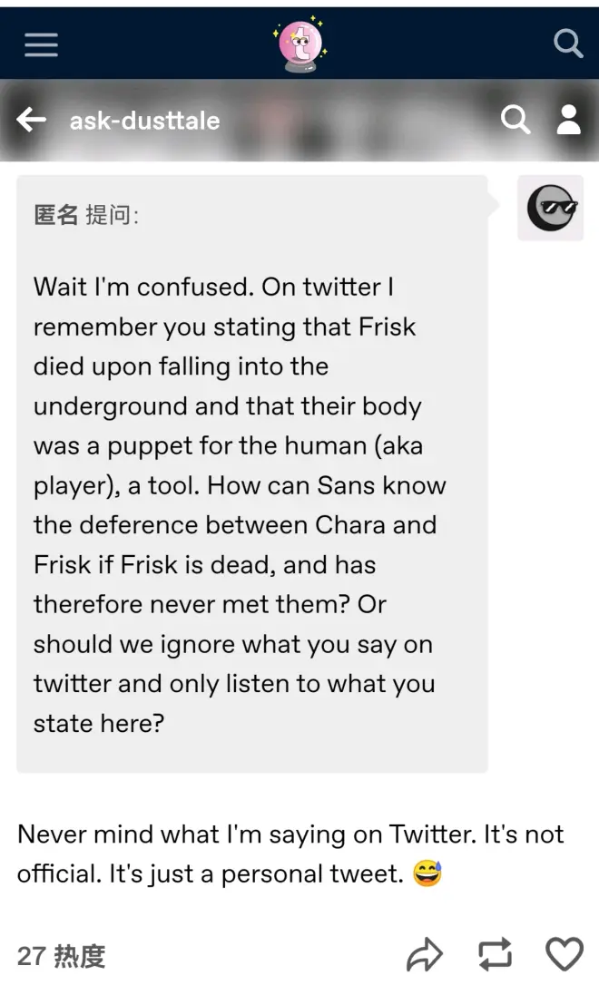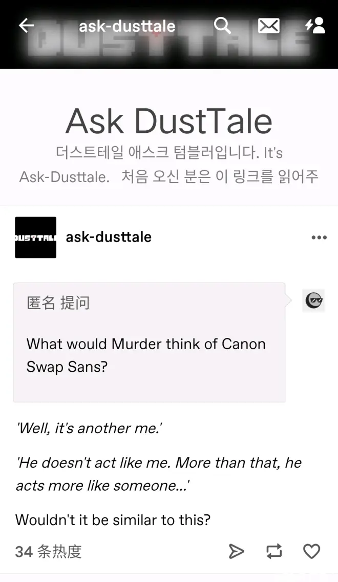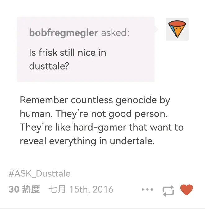 tumblr上的Ask_Dusttale同样是早于游戏的!