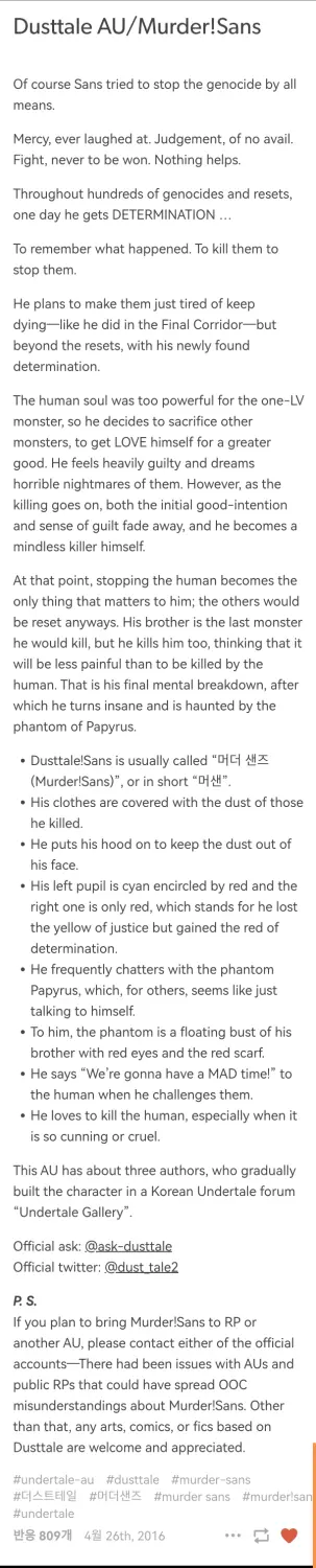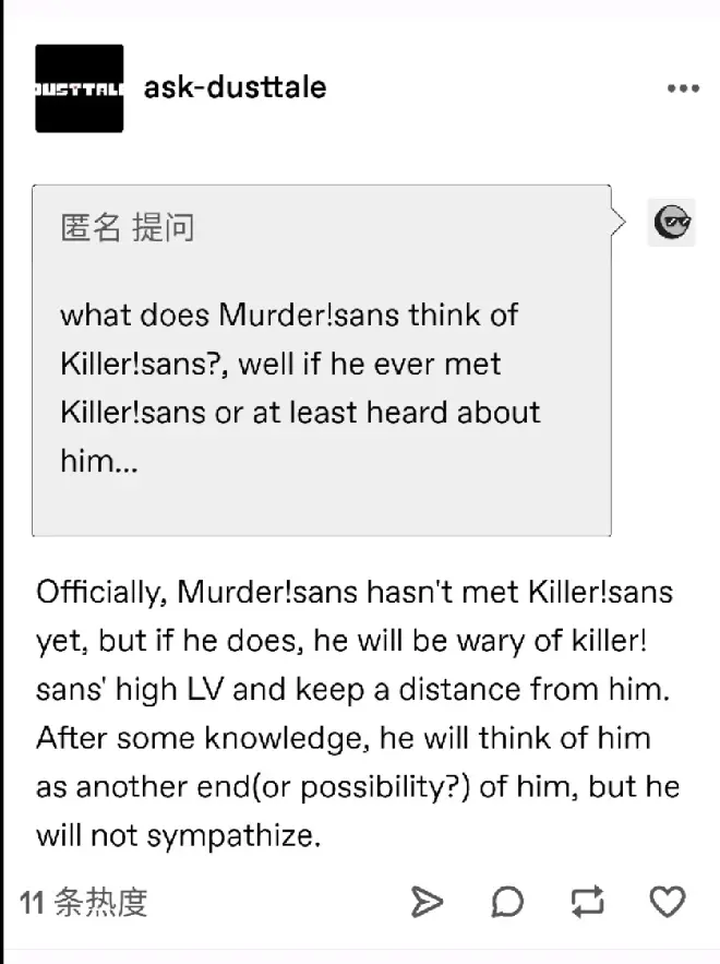Murder!sans官方设定科普向(Tumblr上面Ask _ dusttale已更新至2021年10月7日)
