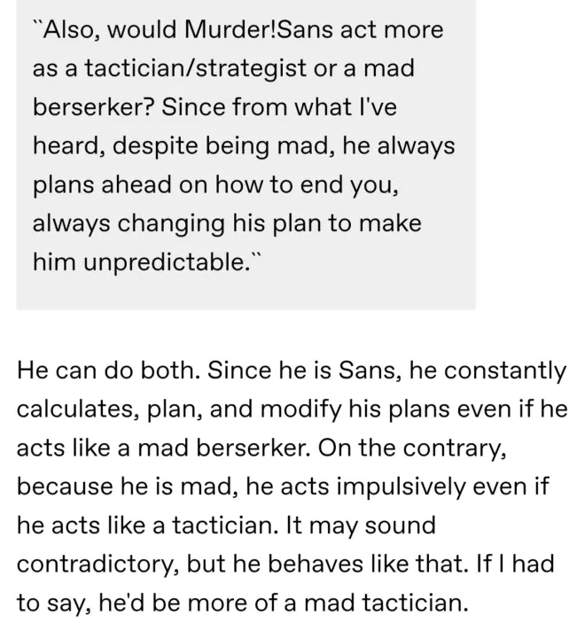 1. Calvateyla认为“Murder能否击败其他AU的角色”这件事是非常难回答的,因为每个人都有不同的答案