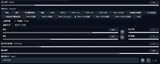 迭代数:32 采样 DPM++2M卡拉斯 画布适配画面 重绘:0.75