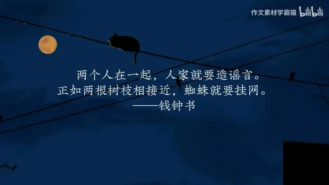 7.两个人在一起,人家就要造谣言。正如两根树枝相接近,蜘蛛就要挂网。——钱钟书