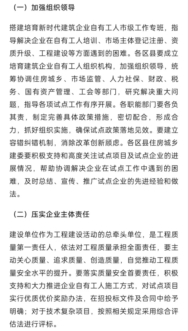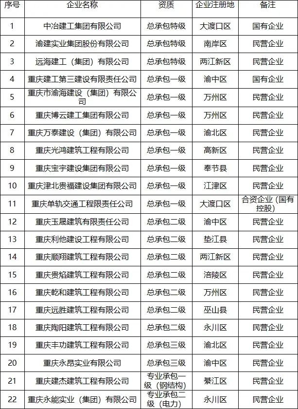 2023年5月24日,重庆市住建委发布《关于印发培育新时代建筑企业自有工人队伍第2批试点企业的通知》,将33家企业纳入第2批试点企业,加上去年印发《重庆市培育新时代建筑企业自有工人队伍试点工作方案》时公布的第1批22家,共55家试点企业全面推行自有工人施工!