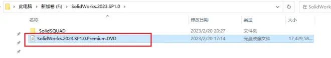 11、进入第2步解压的文件夹SolidWorks.2023.SP1.0,双击SolidWorks.2023.SP1.0.Premium.DVD打开光盘镜像。