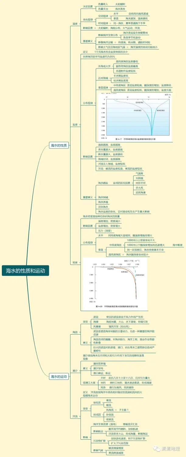 海水的性质和运动思维导图(湘教版必修一)