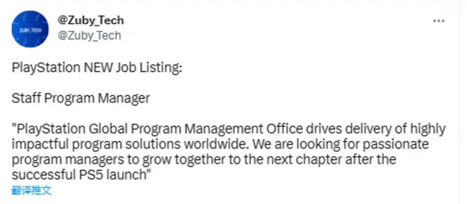 @Zuby_Tech表示,这意味着PlayStation的产品团队开始扩大,可能暗示即将推出新的硬件。