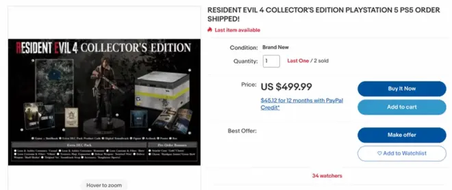 近期有玩家反映,由于零售商GameStop取消了大量预购订单,导致《生化危机4RE》珍藏版在美国eBay上的价格疯涨,一度飙至500美元,几乎是原价的两倍。