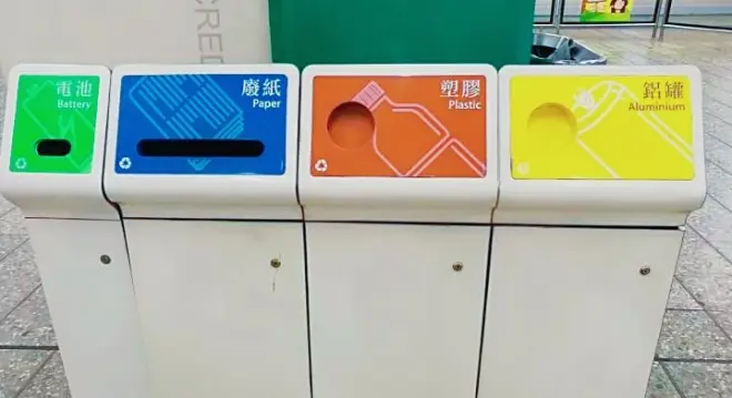 香港的垃圾分类让人印象深刻,用涂鸦或者可爱的标志醒目的标识好废纸、塑料、果屑等不同的分类。