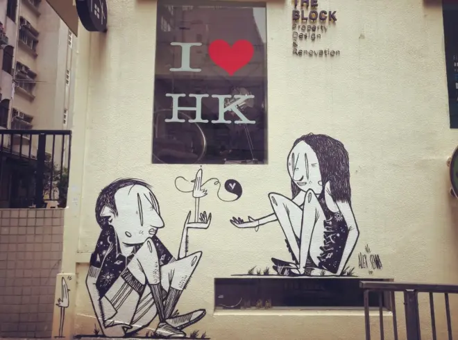 沿着半山扶梯下来,转角便来到有着整面网红涂鸦墙的嘉咸街。