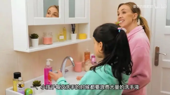 宝宝浪费洗手液: