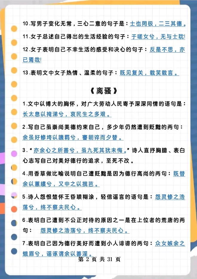 今天给大家整理了高中必背64篇古诗文涉及到的理解性默写大全,背了就能得分的内容!