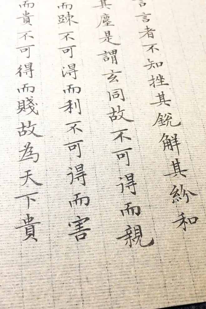 明于道者不立言,立言的不明于道。堵塞授受承接的接口,关闭出离混沌无名的门径,消磨过分突出的锋角,排解纷挠的矛盾纠结,收敛过于耀眼的光芒,同一切存在浑为一体。这就叫做达成了浑融一体的“玄同”境地。所以,有所得于道就超越了亲、疏、利、害、贵、贱的捕获。这样可以得到整个天下的共同推重。