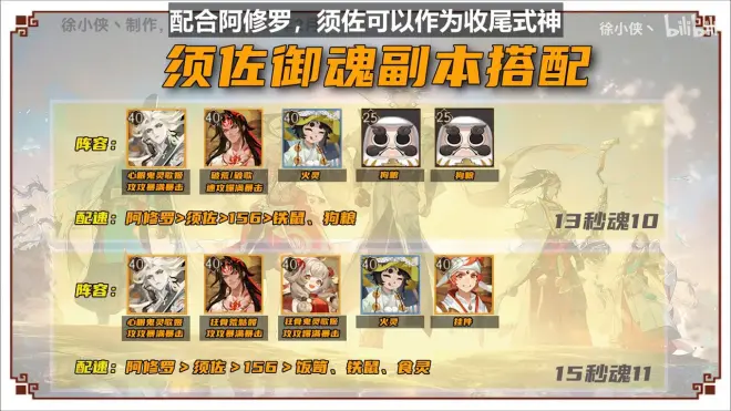 须佐常用御魂:破势、海月火玉、狂骨、心眼、隐念+首领御魂→土蜘蛛、歌姬、荒骷髅