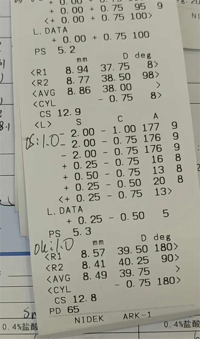 术前度数:右眼近视425度+100度散光,左眼近视500度+50度散光