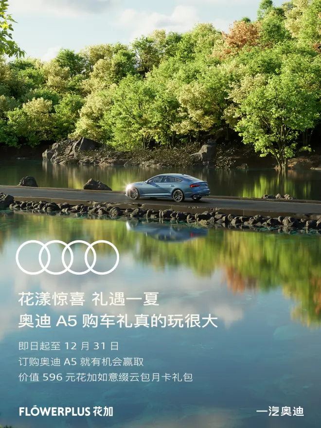 订购奥迪 A5 就有机会赢取价值 596 元花加如意缀云包月卡礼包