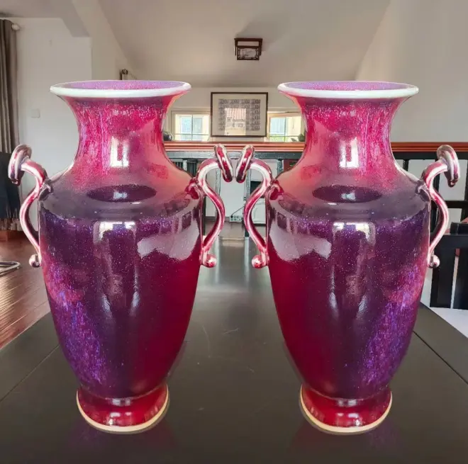 【藏品规格】:高约36cm 口径约12.5cm 底径约11.5cm 如意耳长13cm