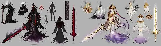 奈克斯和维塔出生在希洛克死亡和复活时产生的邪念中,在无形之门掌管着生和死。奈克斯像死神,维塔像天使一样的感觉,有着相互对比的形象,但是为了保持守护希洛克的怪兽这个大框架,所以留意进行了设计。