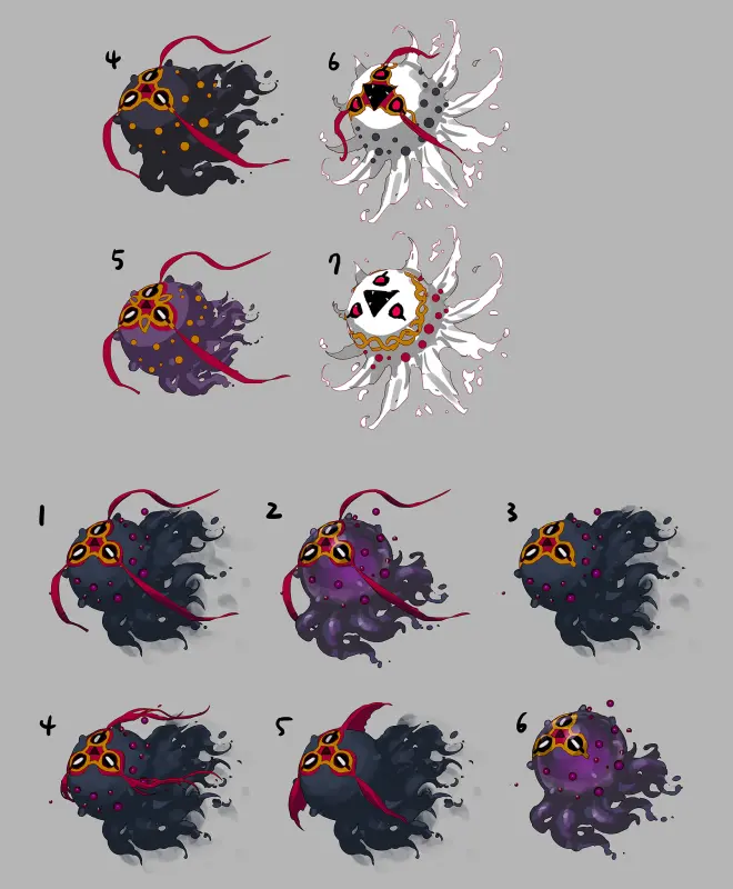 这些是最初的试行方案。 无论多么可爱,都不是从我军,而是从希洛克诞生的敌对生命体,因此要考虑可爱、出生(希洛克)形象、攻击性等。 参考深海生物中看起来比较可爱的海螺、小章鱼、小猪鱿鱼等,开始了创作。