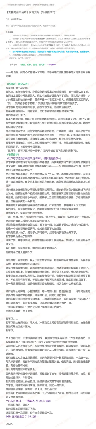 听过一个这样半独白类型的英文音声,非常喜欢,于是一直很想要写一个出来。无奈文笔真的一般,很多不满意但又不知道该怎么修改的部分。