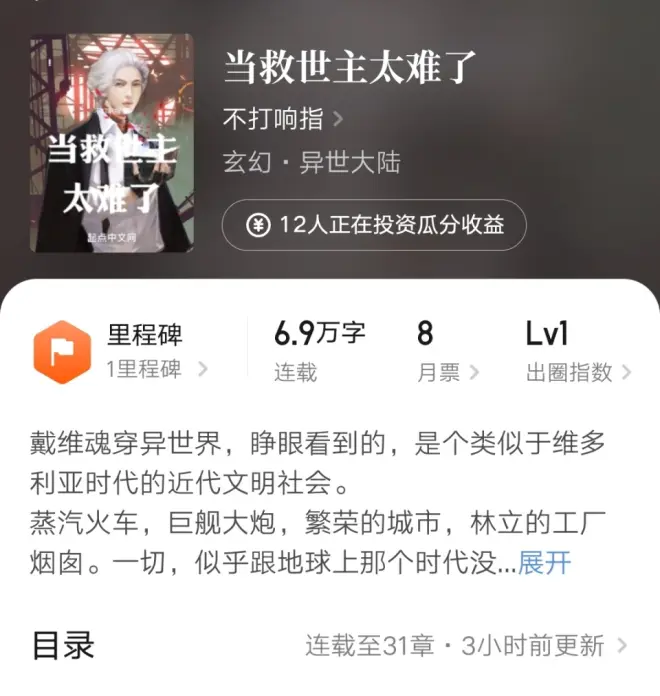只是他这更新显然不是很靠谱,日更很不稳定,这都快一个月了,写了还不到七万字。如此表现,新书期属实很难出成绩,进入大家的视野的。