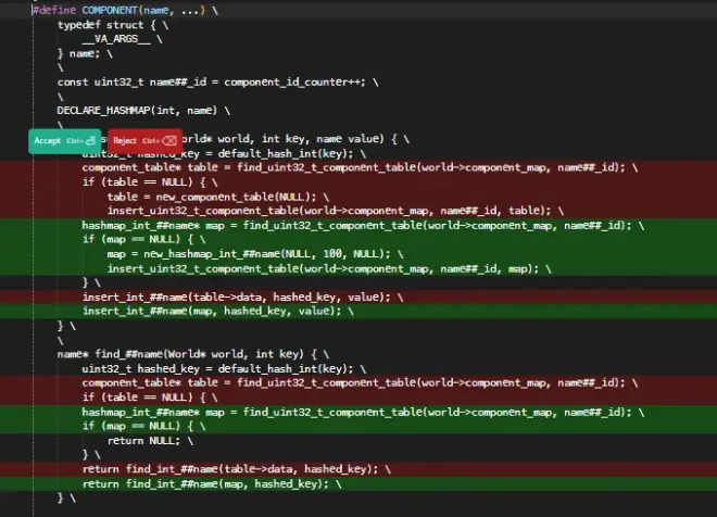 于是,我们让它添加一个extern全局变量存储id,extern uint32_t component_id_counter;(修改不多,就不截图了,专栏一长就开始卡,打个字都需要几秒钟),将常量后面的__counter__换成了这个变量的++(注意,虽然xx++在c++现在是ub,但在c中还是原来的那种效果,话说回来C++岂不是......)