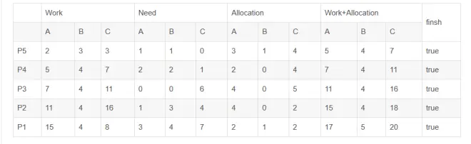 同理依次推导,可计算出存在安全序列P4,P5,P3,P2,P1(并不唯一)