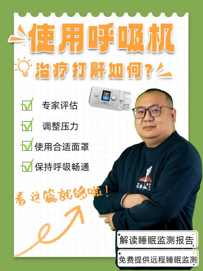 使用呼吸机打鼾的方法是采用正压通气技术,即通过呼吸机提供持续的气道正压,以保持呼吸道的开放和通畅。 虽然呼吸机通常用于睡眠呼吸暂停综合症(睡眠呼吸暂停),但在某些情况下,也可以用于严重的打鼾问题。 使用呼吸机打鼾的具体步骤如下: 1. 首先,将评估你的症状和打鼾的严重程度,进行必要的测试,以确定是否适合使用呼吸机。 2. 如果决定使用呼吸机,会调整合适的压力和其他参数。这些参数根据你的具体情况和需求进行调整,以确保呼吸机能够提供足够的气道正压,减少打鼾的症状。3. 你将被配备合适的呼吸机和面罩或鼻罩来使用。面罩或鼻罩的选择取决于个人喜好和适应情况。 4. 在睡眠时,你将佩戴呼吸机,并根据建议打开呼吸机。呼吸机将提供持续的气道正压,以保持呼吸道的开放和通畅。 使用呼吸机打鼾的效果因人而异。对于一些人来说,呼吸机可能能提供显著的缓解和改善打鼾的症状。