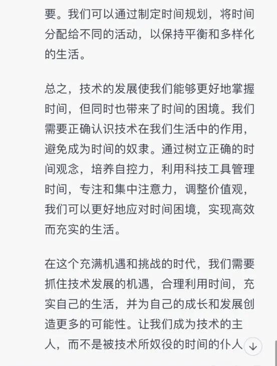 虽然细看的话两位“考生”都是套话连篇,但至少在行文上文心一言的写作技巧会比chatgpt好上不少。