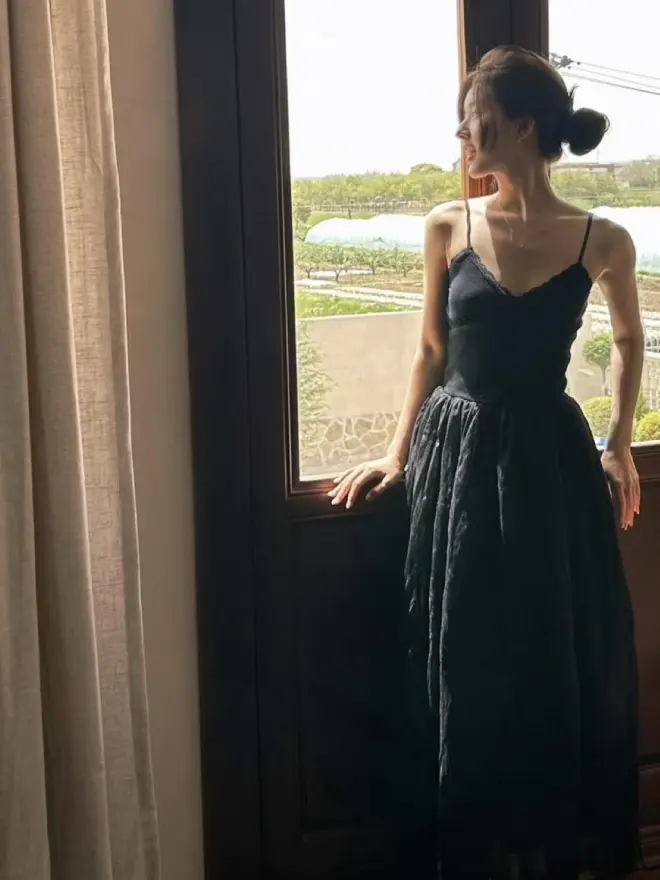 甜美赵露思也可以走气质路线、这件黑色吊带连衣裙很像高贵的黑天鹅,纤细的腰身搭配轻盈灵动的裙摆,仿佛下一秒赵露思便要翩翩起舞,美哉美哉!