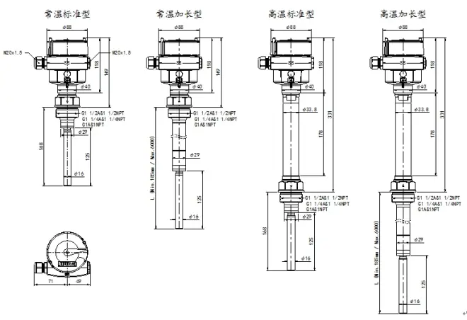 振棒料位开关不同过程连接下的规格尺寸(附图)