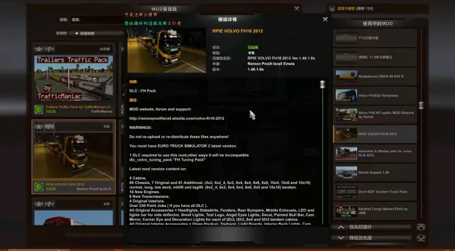 丹尼斯道路事故模组,增加道路事件种类,这个比较特殊,模载联合没找到在其他网站找到的,可以进群下载或者在b站搜索欧卡2丹尼斯事故mod寻找其他up主下载