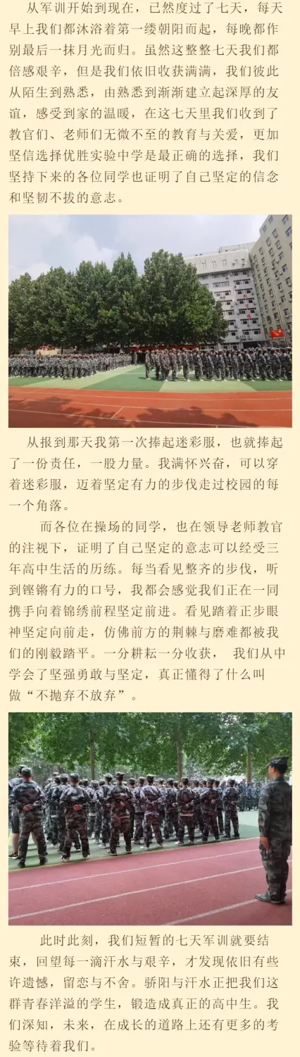 追求卓越、梦想启航:郑州优胜实验中学2023级高一新生军训感言的评论 (共