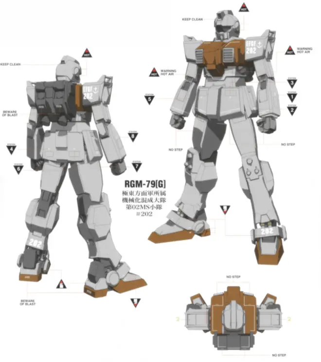 这些单位在维系东南亚战线、驱逐吉翁军MS等方面有着极大的贡献。吉翁军也将这一型取了“神秘巨人”的称号。当然还有一说认为RGM-79[E]是以RGM-79[G]为基础改装内部零件以适应宇宙环境而来的宇宙战样式机体。当然这一说法各位就见仁见智了。