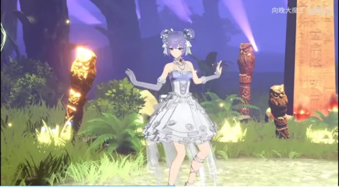 四首宅舞连跳结束之后,三人离开了场地,留给了这场生日回的女主角向晚。探寻着新衣服隐藏功能中,向晚成功从略显憨憨的新娘,摇身一变成为了贵族大小姐。