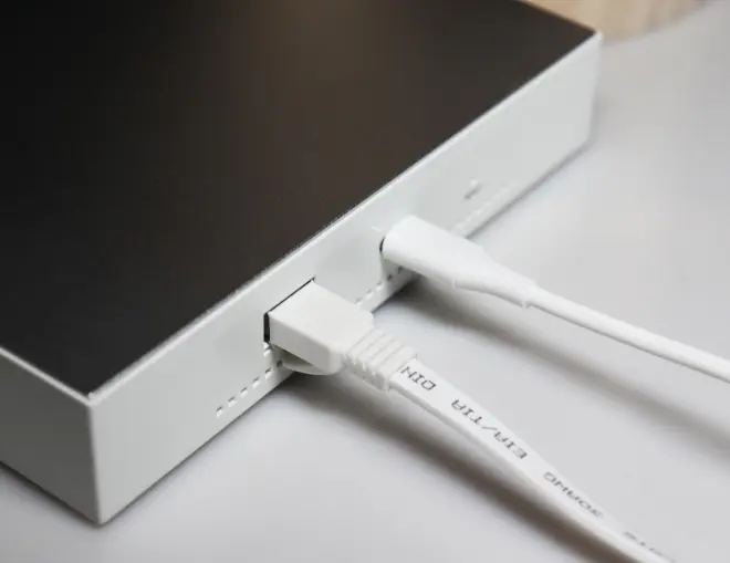 在Me盒主机的背面设计上,也非常简洁实用,只有三个功能接口及按键:RJ45的千兆网口、Type-C口的电源接口以及重置键,非常方便用户进行操作。在网络方面,Me盒可以通过有线和无线两种方式进行联网。有线网络方面,Me盒配备了一组RJ45的千兆网口,可以提供高速、稳定的有线网络连接。而在无线网络方面,Me盒支持2.4G和5G两个频段的无线联网,用户可以根据具体需要来选择不同的网络。