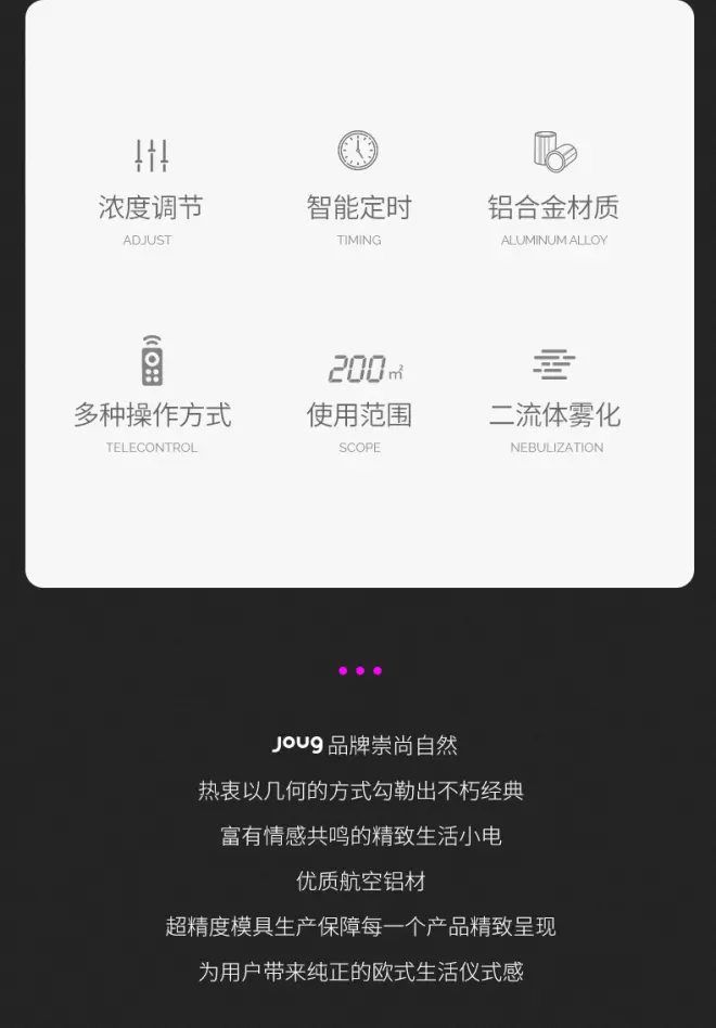 将joug扩香机作为载体,使香味扩散更广、更快,沉浸在散发出来的香味,让整个人的身心得以放松。