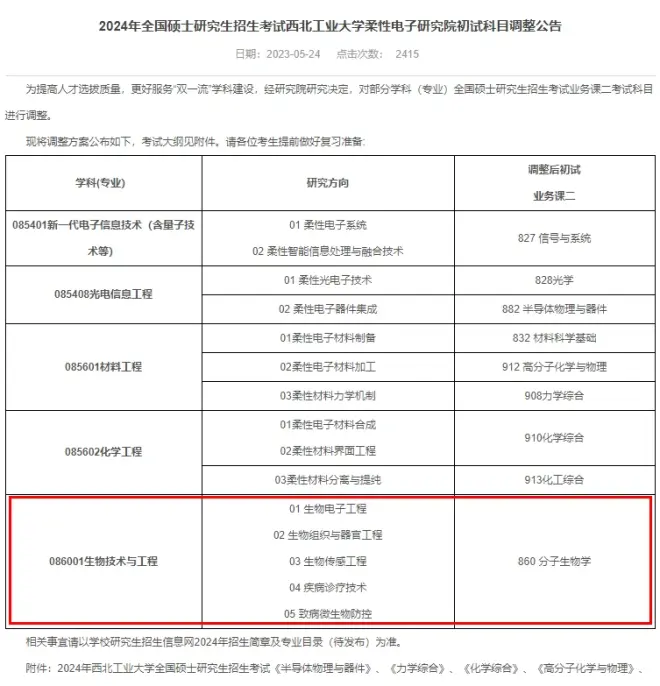 PS:根据2023年招生目录看,086001生物技术与工程2023年初试考试科目为860 分子生物学,具体更改情况建议咨询招生办进行核实
