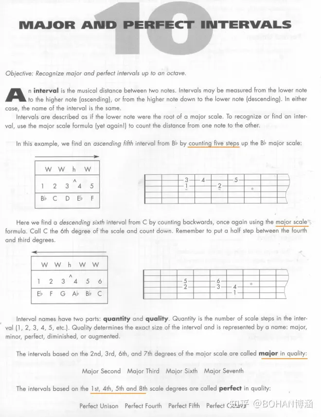 第10章:「Major和Perfect的音程」,章节前面部分就是描述练习内容相关的乐理知识,并且与上一个章节衔接。