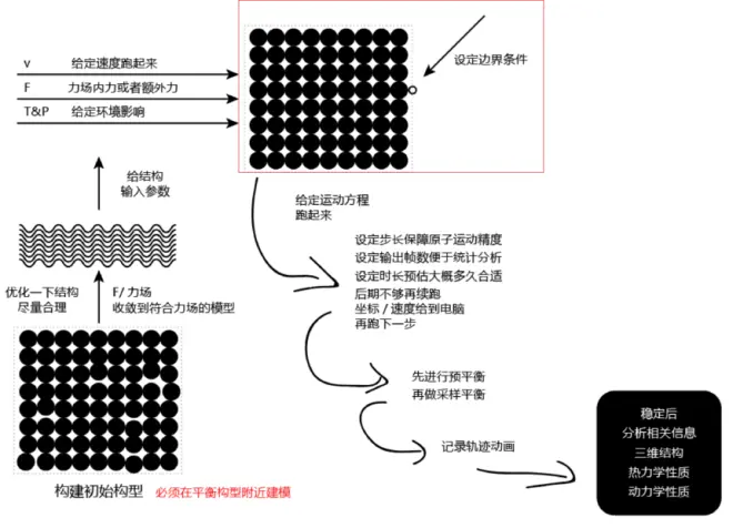 周期边界条件:我们模拟的体系太大就需要大量的计算,在针对于某些问题的时候,我们模拟分析的体系可以少些,但是需要加入周期性边界条件,是因为有边界效应,所谓边界效应就是本该最左边的分子与最右边的是有相互作用的,结构没有设置周期性边界,导致没了。如何理解就是我们无限放大实验的烧杯,烧杯壁上的分子只能有一边有相互作用。