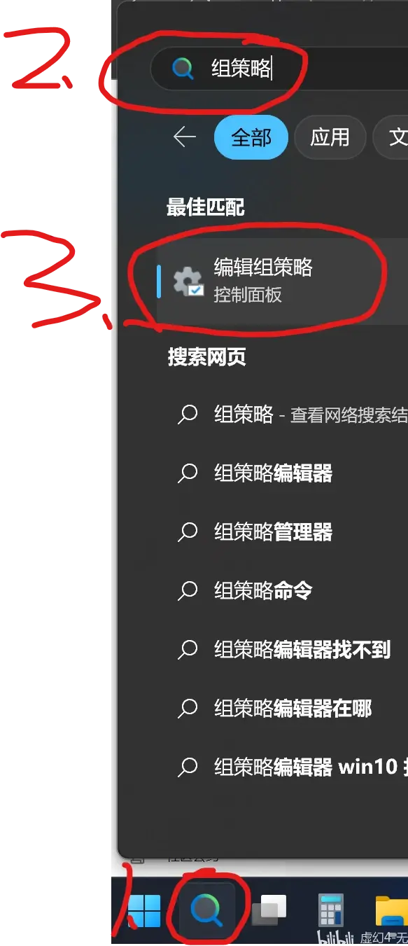1. 搜索组策略,并打开组策略编辑器