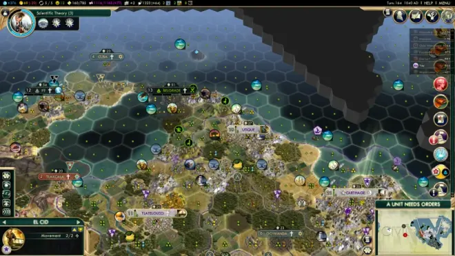 阿兹特克的军评已经低于我,不过攻城还是比较困难。后方城市也很尴尬,政策4t而科学理论要6t,无工厂的三分干脆先补工厂,首都则给瓷塔攒锤子,缺少道路导致造兵意义不大,前线已经在补猴子待命,应该不至于缺骑士下城。