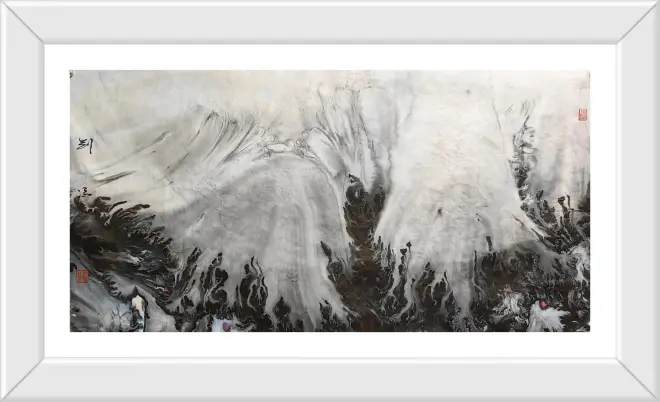 盲目求新者,很容易就会陷入一种求古不古,求新不新的创作囧境,而今日的刘冯先生之所以能在山水丹青艺术上标新立意,其原因也是无外乎于三方面,一是他对于中国传统丹青艺术的文化脉络整合,二是他在笔墨表现上所展现出的意识纯化,三是他对当代美学视角的充分参考。此三点于刘冯先生来说,缺一不可。并且从这些方面上,我们也是能很清楚的感受到刘冯先生在创作过程中所付出的巨大努力和心血,令人可敬更可佩!