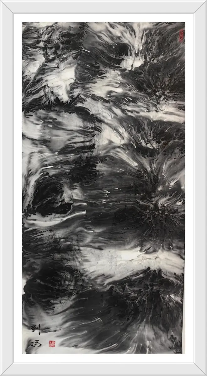 刘冯自幼酷爱艺术。对艺术创作有自己独特的见解,通过对水墨、技法、材料,风水的大胆探索,并广泛吸收各艺术名家的创新理念,锲而不舍,逐步形成自己的艺术特色。他的元宇宙意象山水画用笔独特,把山水的神秘与灵动体现的淋漓尽致。刘冯的现代水墨作品,大气磅礴,纵横万壑,妙趣天成。不论是丈二巨幅,还是尺余团扇,可见浓墨乍起,奇幻缥缈,宛如风云激荡,动感十足,又如广袤圣漠,幽邃禅境。