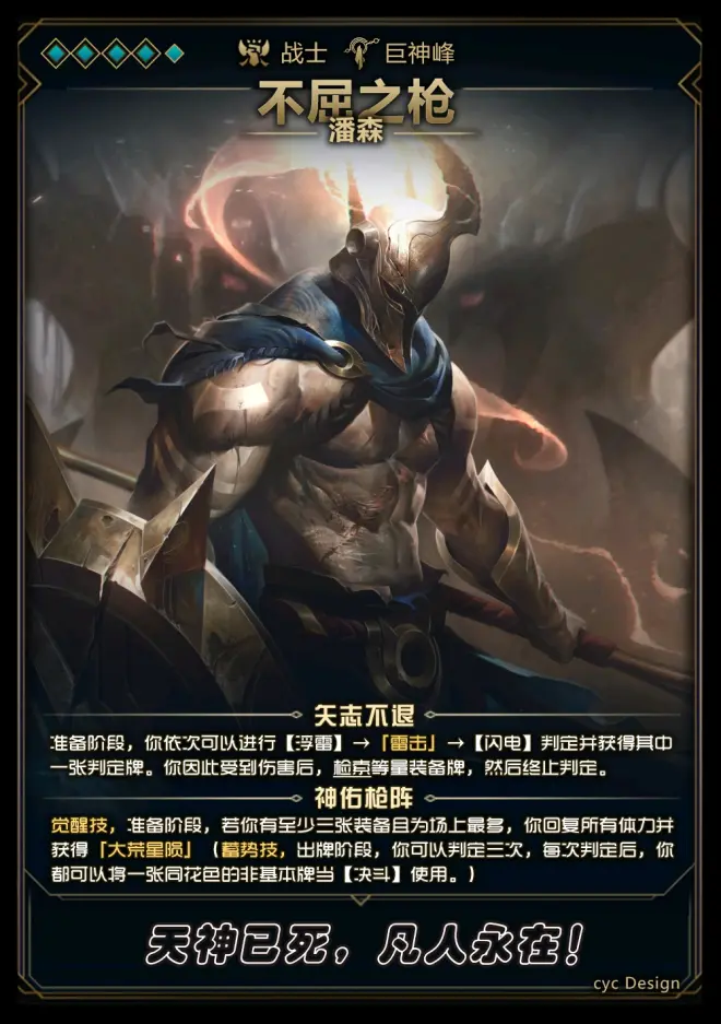 身为凡人,却不惧神的威压,阿特瑞斯用惊人的毅力与勇气证明了,凡人亦可比肩神明。觉醒前,阿特瑞斯需要硬抗天界的神力(各种雷电判定),觉醒后,他将获得战争星灵——潘森的神力,获得不俗的输出能力。