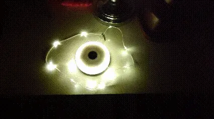 侧面有一个挂钩,取出挂钩里面竟暗藏玄机。柔光罩内里隐藏着LED灯串,我真的第一次见到这样有创意设计的氛围灯,原本小小一只看起来没什么特别,没想到藏了10米长的灯串,这给我很大惊喜。抽出灯串,用这个挂钩就把它固定住了。